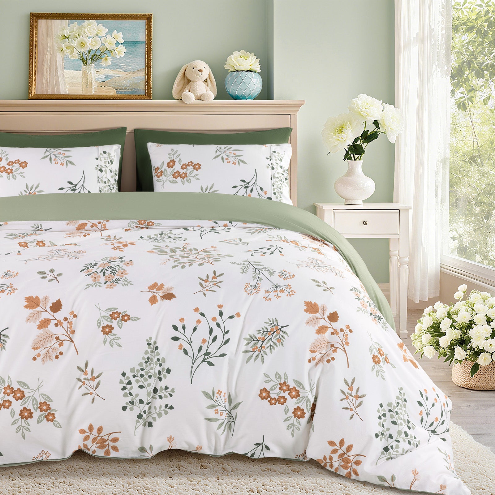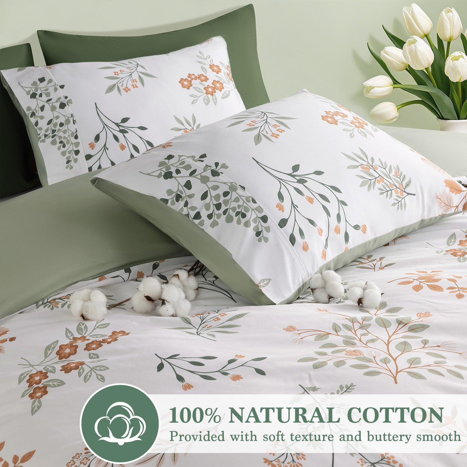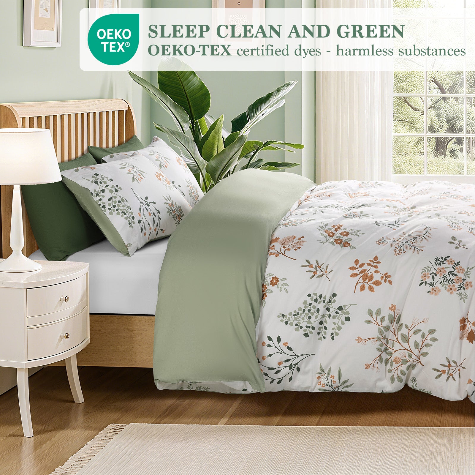 Upgrade Your Bedroom Atmosphere The stylish botanical print and coordinated 3-piece set instantly elevate your bedroom, creating a fresh, cozy, and Instagram-worthy space.